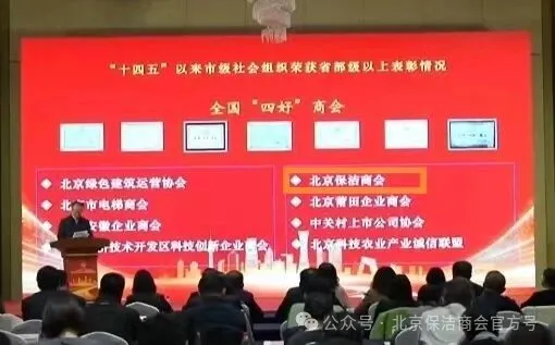本次活动通报了《“十四五”期间受到省部级以上表彰的市级社会组织名单》,北京保洁商会作为“十四五”以来获此殊荣的市级社会组织,此前已成功获评全国“四好”商会,充分体现了商会在党建引领、规范治理、服务行业与履行社会责任等方面的突出成效。